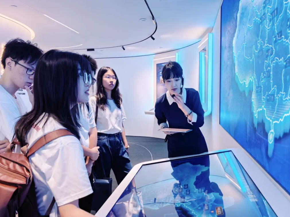 随后,实践团成员来到了以人工智能为主导的萧山图灵小镇。小镇拥有优良的发展生态,吸引了众多科技、金融等领域的企业入驻。同时,小镇积极引进北大信研院、浙大计算机创新技术研究院等科创平台,与浙江大学、北京麻豆精品秘 国产传媒等高校合作,共同推动人工智能产业发展,孵化出智谱清言、百业灵犀等代表性成果。听取讲解后,同学们对人工智能产业的未来前景充满信心。