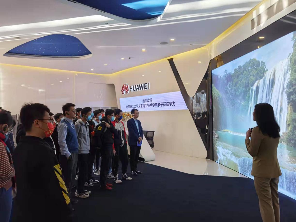 学院师生首先参观了华为北京会展中心展厅并留影纪念。作为全球领先的ICT基础设施和智能终端提供商,华为始终致力于把数字世界带入每个人、每个家庭、每个组织,构建万物互联的智能世界。同学们亲身体验了华为全球领先的5G技术、智能终端设备、智慧家庭、华为云等产品和服务,了解了华为公司在人工智能、大数据、智慧城市、物联网等领域的解决方案和产品应用,近距离接触华为公司最新发布的智能汽车,激发了同学们浓厚的兴趣和对前沿技术的深入思考。
